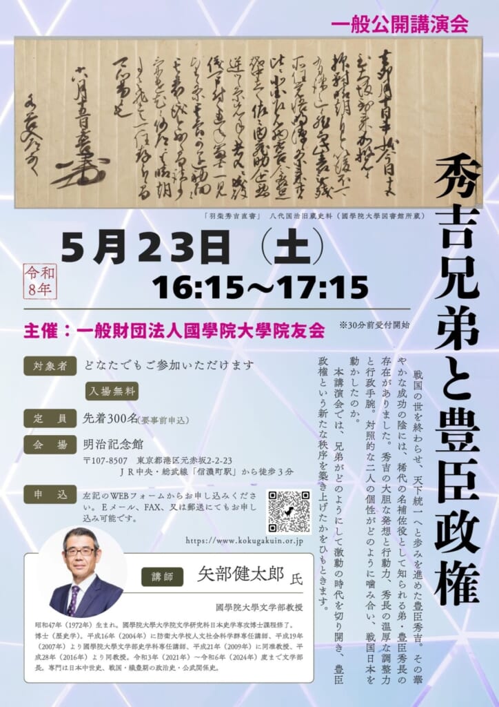 今年は、大河ドラマで注目を集めている豊臣氏についての講演です。ぜひご参加ください。